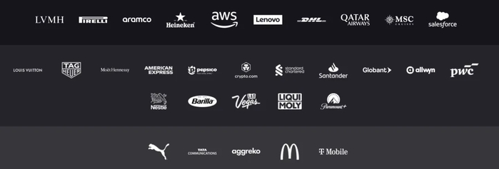 根据F1官网显示,目前F1共有10家全球合作伙伴,分别为LVMH、倍耐力、沙特阿美、喜力、AWS、联想、DHL、卡塔尔航空、MSC地中海邮轮以及赛富时。